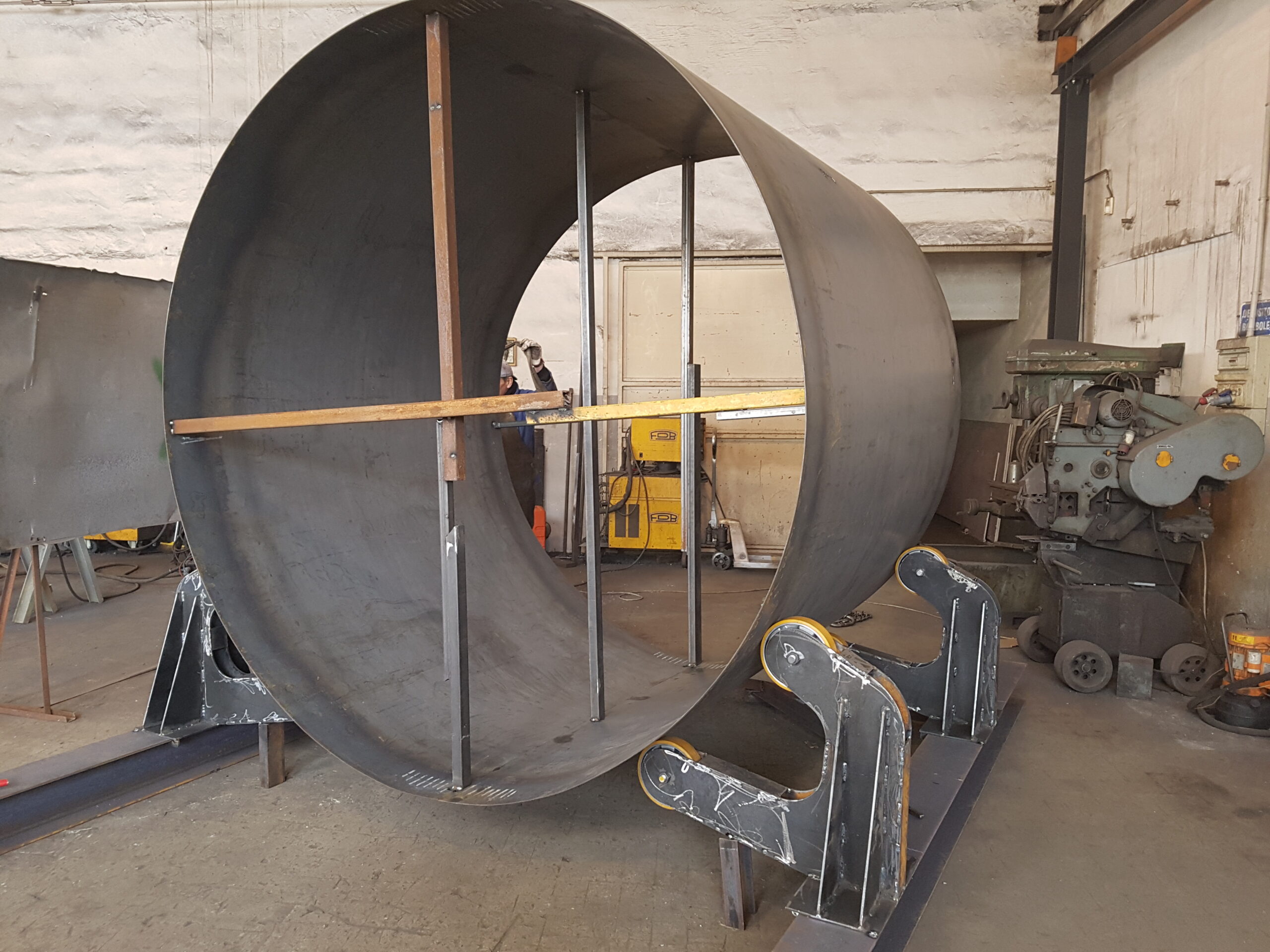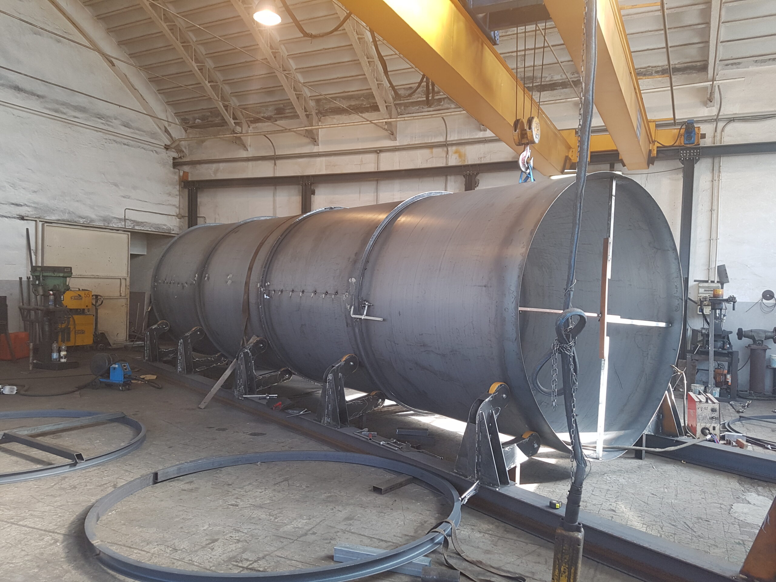 Realizzazione di Silos per stoccaggio materiale inerte con una particolare capacità interna fuori standard rispetto a quanto già in commercio, in carpenteria metallica verniciata contro gli acidi, per Bonnici House, anno 2017.