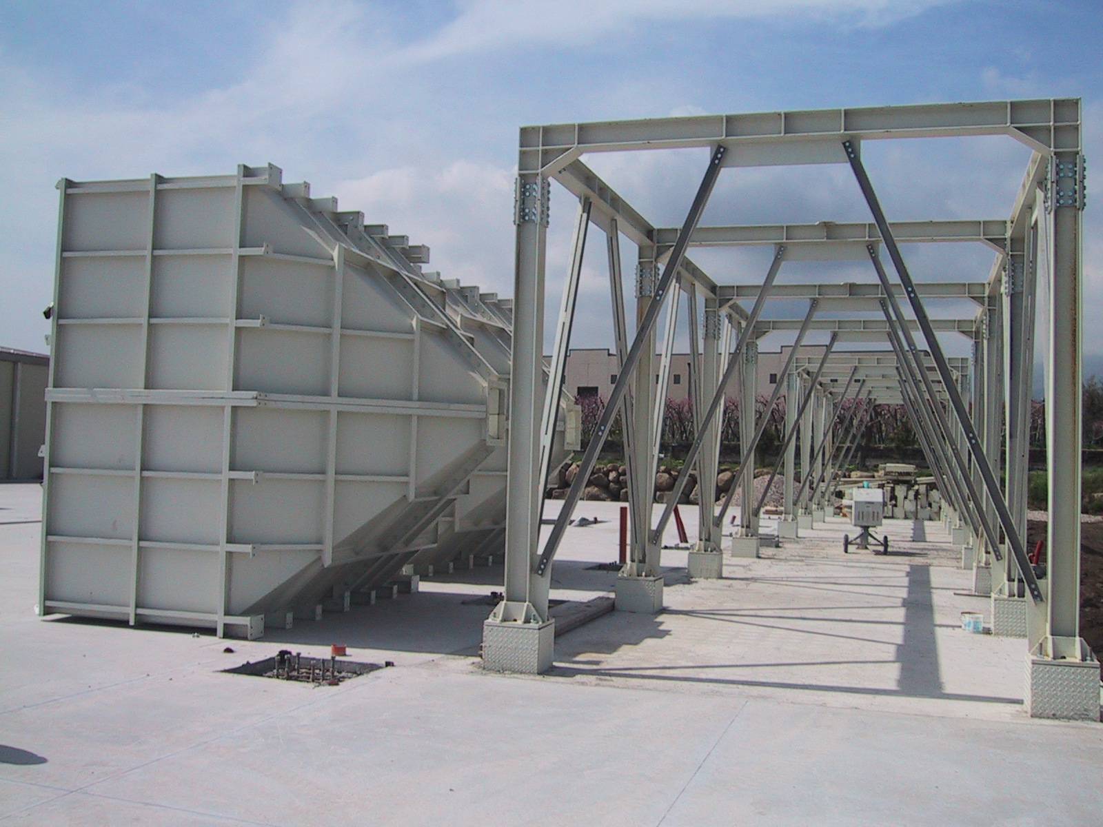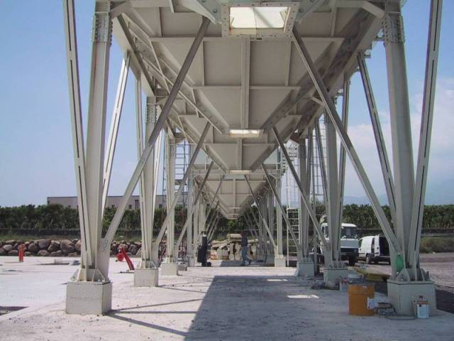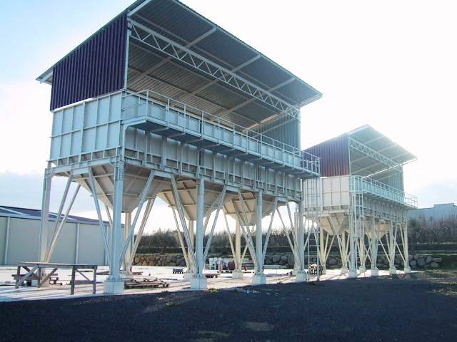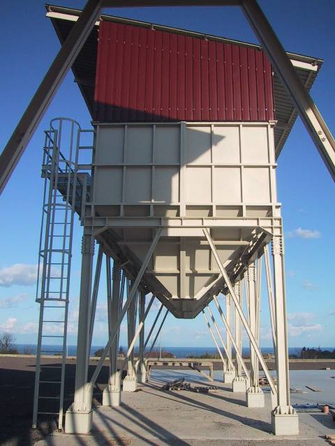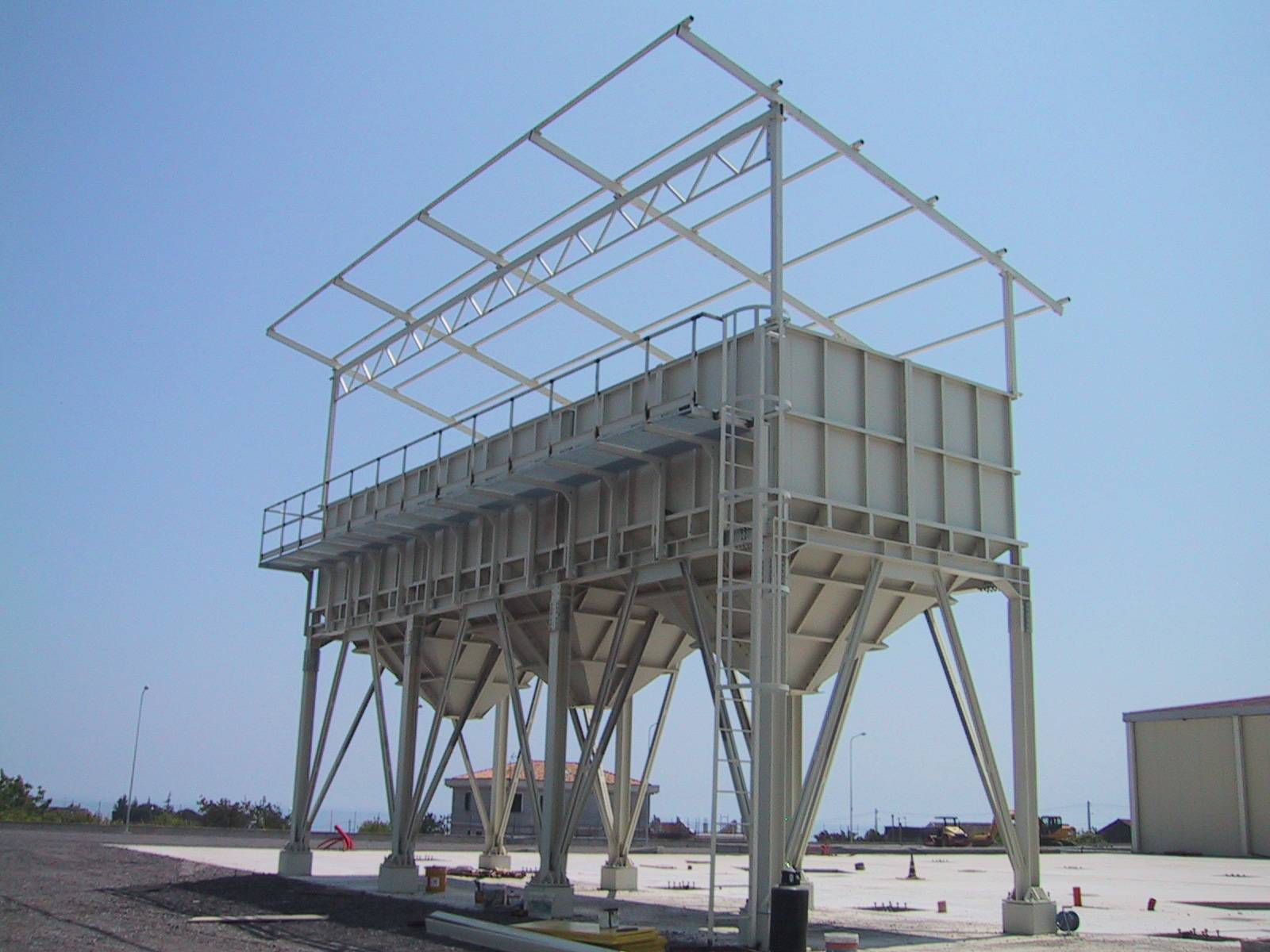 Realizzazione di n° 2 Batterie di tramogge per stoccaggio e movimentazione di materiale lapideo, complete di tettoia di copertura, passerella d’ispezione e scala alla marinara.