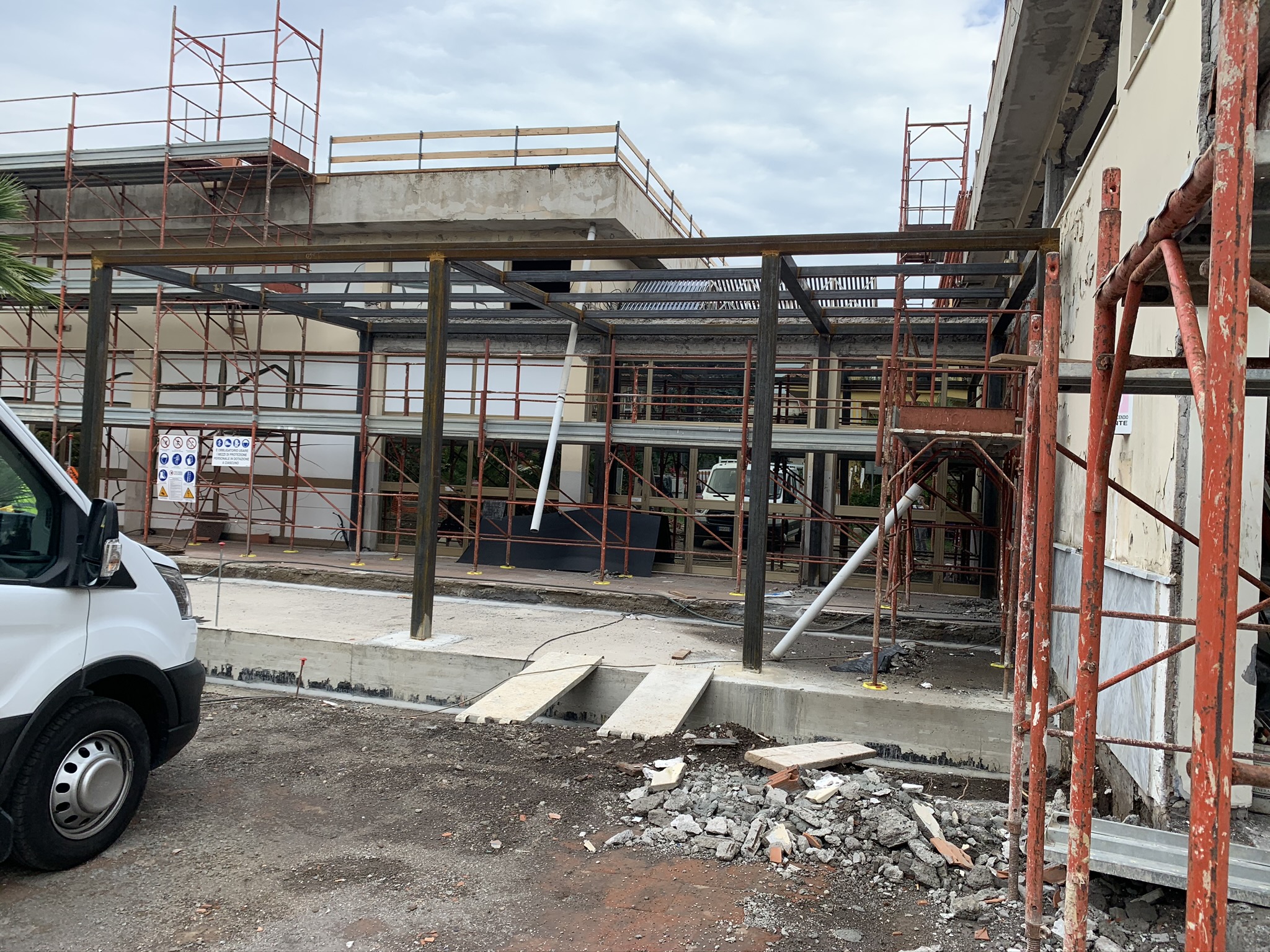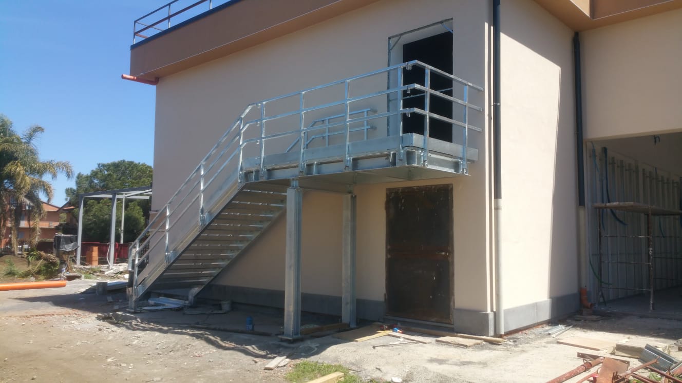 - Una struttura metallica di ampliamento per realizzare un “Anfiteatro coperto” con annessa scala di sicurezza in acciaio come uscita di sicurezza delle persone in caso di emergenza;